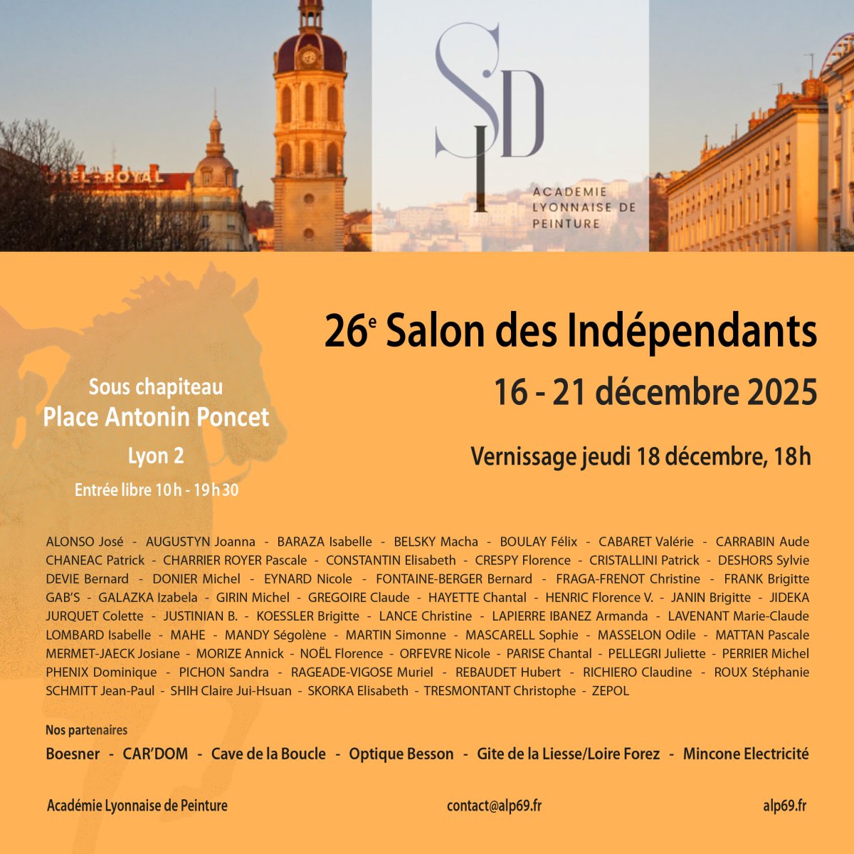 - Du 16 au 21 décembre 2025 Salon des Indépendants Place Antonain Poncet 69002 Lyon